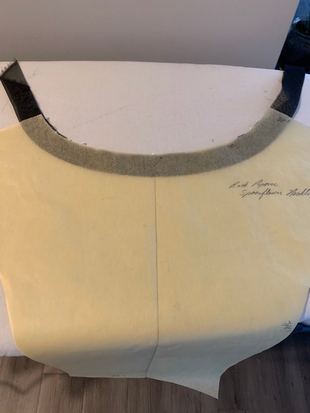 Here I am trying on the finished garment. I just threw it on and didn’t realize I hadn’t gotten it straight before taking the picture. I’ll take a better picture when I have the complete ensemble.