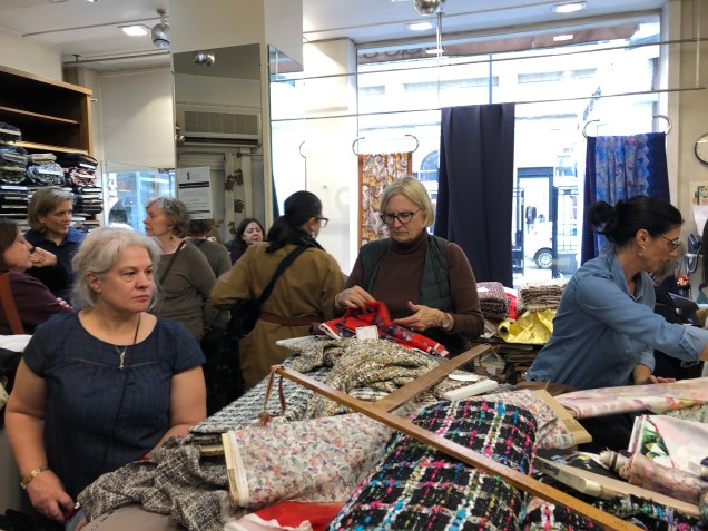 Of course, there are some tangible things I brought home from Paris, primarily fabric. (As if that’s surprising!) The extraordinary fabric you see here is from Tissus Edré. It went (almost) directly from my suitcase to my cutting table. It was the first thing that caught my eye when I arrived with Susan Khalje’s Paris Tour group, and my BFF Stephanie from 10sewingmachines.blogspot.com had to remind me about it when it was time to check out because my head was filled with so many other treasures that surrounded us.